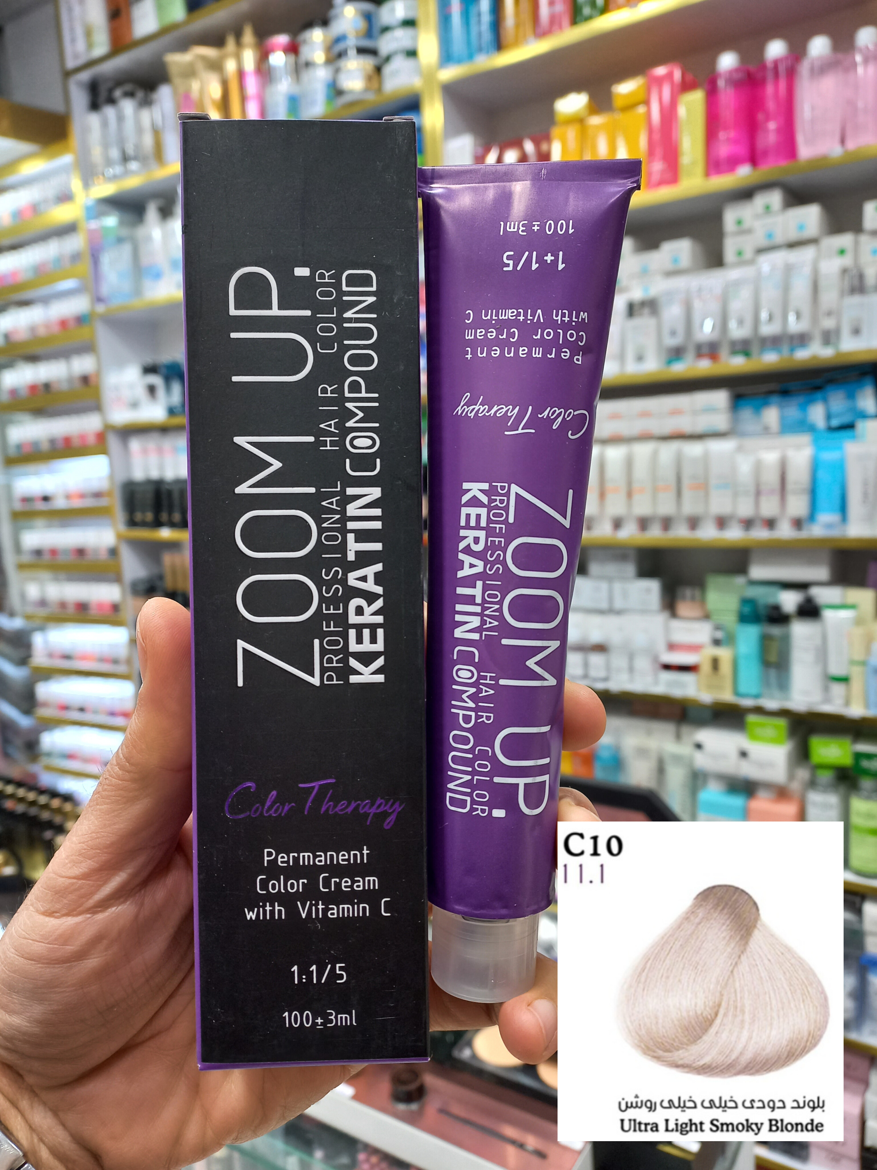 رنگ مو زوم آپ C10 بلوند دودی خیلی خیلی روشن حجم ۱۰۰ میلی لیتر
