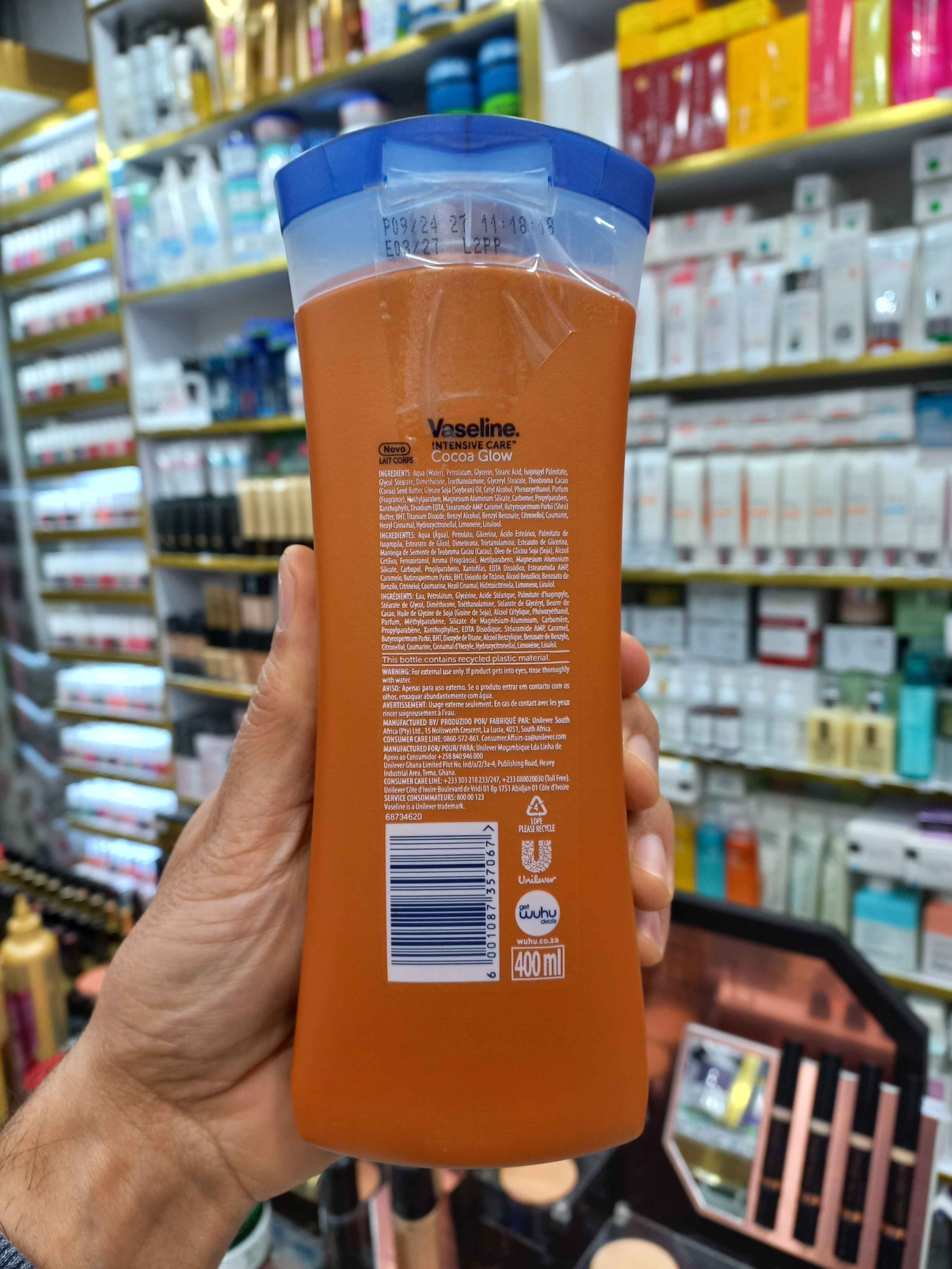 لوسیون بدن وازلین قهوهای کاکائو گلوو ماندگاری ۴۸ ساعته حجم ۴۰۰ میلی لیتر