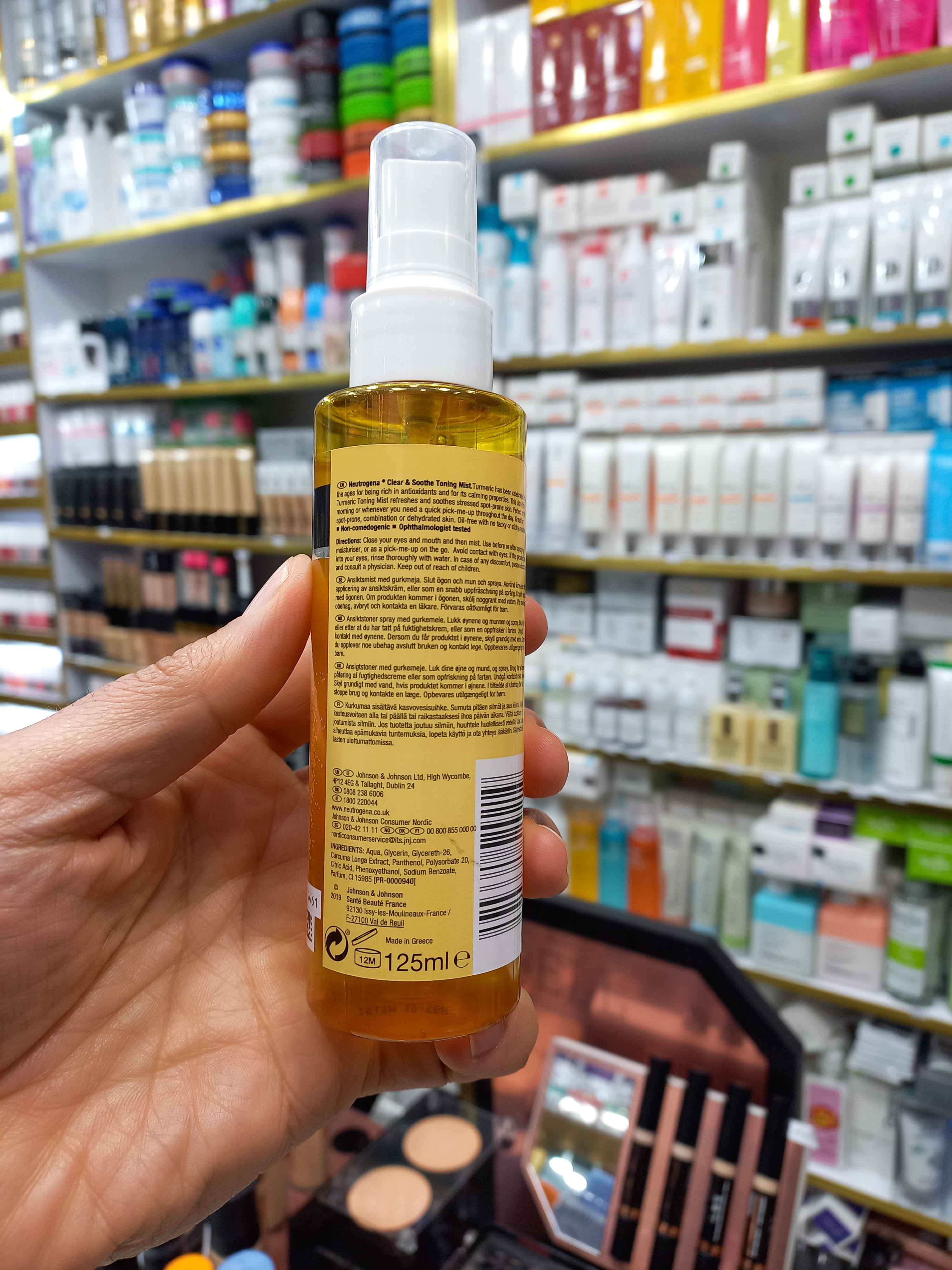 تونر اسپری زردچوبه نیتروژینا (Neutrogena Clear & Soothe / Soothing Clear Mist Toner) در حجم ۱۲۵ میلیلیتر یک محصول آبرسان، تسکیندهنده و لطیفکننده پوست است که علاوه بر عملکرد تونر معمول، بهصورت اسپری (میست) طراحی شده تا بتوانی آن را راحت و سریع روی پوست بپاشی و از فواید عصاره زردچوبه بهره ببری.